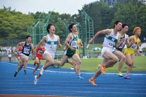短距離パートは、総勢50名ほどで、週4日(月・火・木・土)の全体練習を基本に活動しています。「0.01秒に100%の努力を」というスローガンのもと、個人の記録の向上、そして他の大学に負けない強いチーム作りが目標です。また、400m全天候型トラックの完備、充実したウェイト器具など、申し分のない練習環境がそろっています。