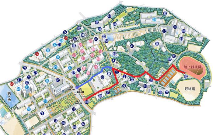 地下鉄出口からは地図の赤色または青色のルートでお越しください。